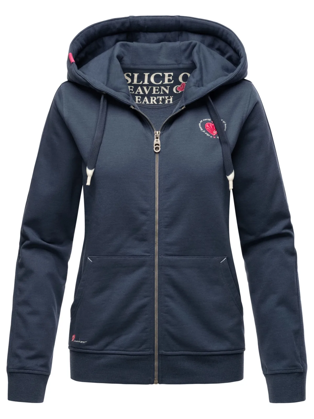 Het Cremetörtchen sweatvest van Navahoo biedt een combinatie van stijl, functionaliteit en draagcomfort. Gemaakt van een zachte katoen-polyestermix met warme voering en licht getailleerde pasvorm. Met grote capuchon met brede koord, hoge kraag, handige zakken en hartvormige logo-details is dit vest een echte favoriet. Verkrijgbaar in 6 moderne kleuren en maten XS–XXL. Materiaal: 48% katoen, 48% polyester, 4% elastaan; voering 100% polyester