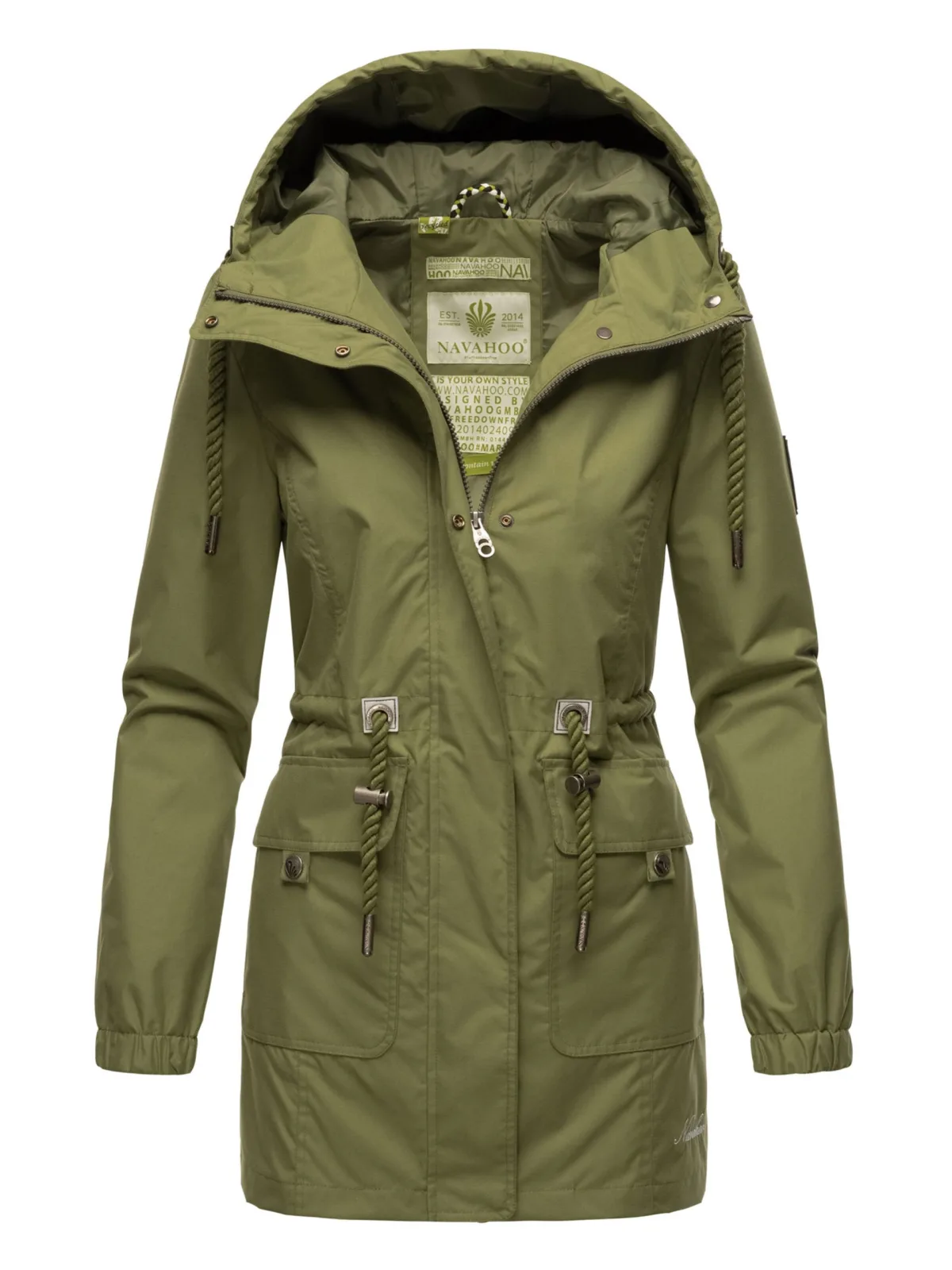 De Neophee tussenjas van Navahoo is perfect voor lente, herfst of koelere zomerdagen. Gemaakt van gerecycled polyester met waterafstotend materiaal en zijdezachte voering. Een vaste capuchon met koord, handige zakken, elastische mouwuiteinden en een taillekoord zorgen voor draagcomfort en functionaliteit. Tijdloos design in 5 moderne kleuren – Neophee staat voor duurzaamheid, stijl en comfort. Materiaal: Buitenkant, voering & mouwvoering 100% gerecycled polyester