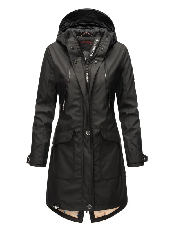 De Schötchen tussenjas van Navahoo biedt bescherming tegen weer en wind met een moderne uitstraling. Het waterafstotende materiaal, lichte voering en fleece aan de bovenkant binnenin maken hem ideaal voor het tussenseizoen. Een grote capuchon, hoge kraag en verstelbare manchetten zorgen voor comfort. Meerdere praktische zakken en een stevige tweewegrits maken de jas functioneel. Met licht getailleerde pasvorm en stijlvolle details is dit een perfecte voorjaars- en herfstjas. Materiaal: Buitenkant 60% PVC, 30% polyester, 10% polyurethaan; voering & vulling 100% polyester