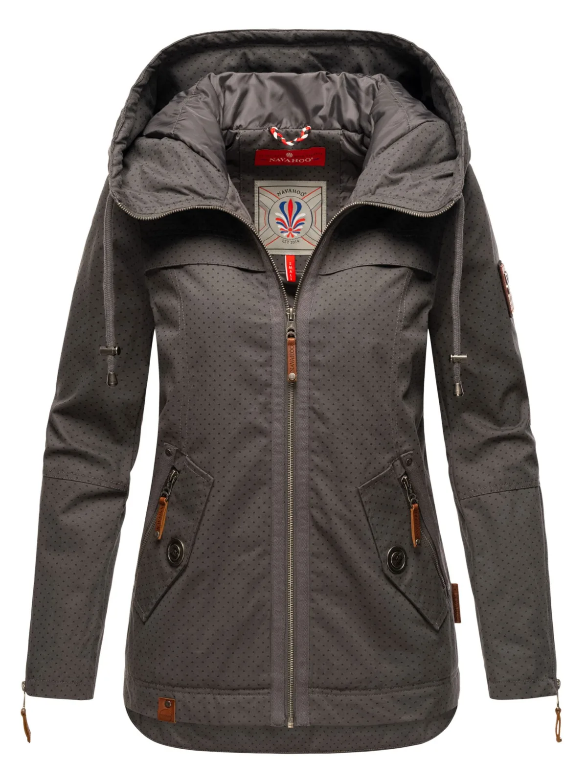 De Wekoo dames tussenjas van Navahoo combineert een modern design met hoogwaardige afwerking. Het zachte katoen in trendy kleuren zorgt voor comfort en een flatterende pasvorm. Met een vaste capuchon met trekkoord, een hoogsluitende kraag en praktische zakken is deze jas functioneel en geschikt voor dagelijks gebruik. Details zoals zilverkleurige knopen en kunstleren ritstrekkers met logo maken het ontwerp compleet. Dankzij de licht getailleerde snit is dit een veelzijdige jas voor lente en herfst. Materiaal: Bovenstof 100% katoen; voering 100% polyester.