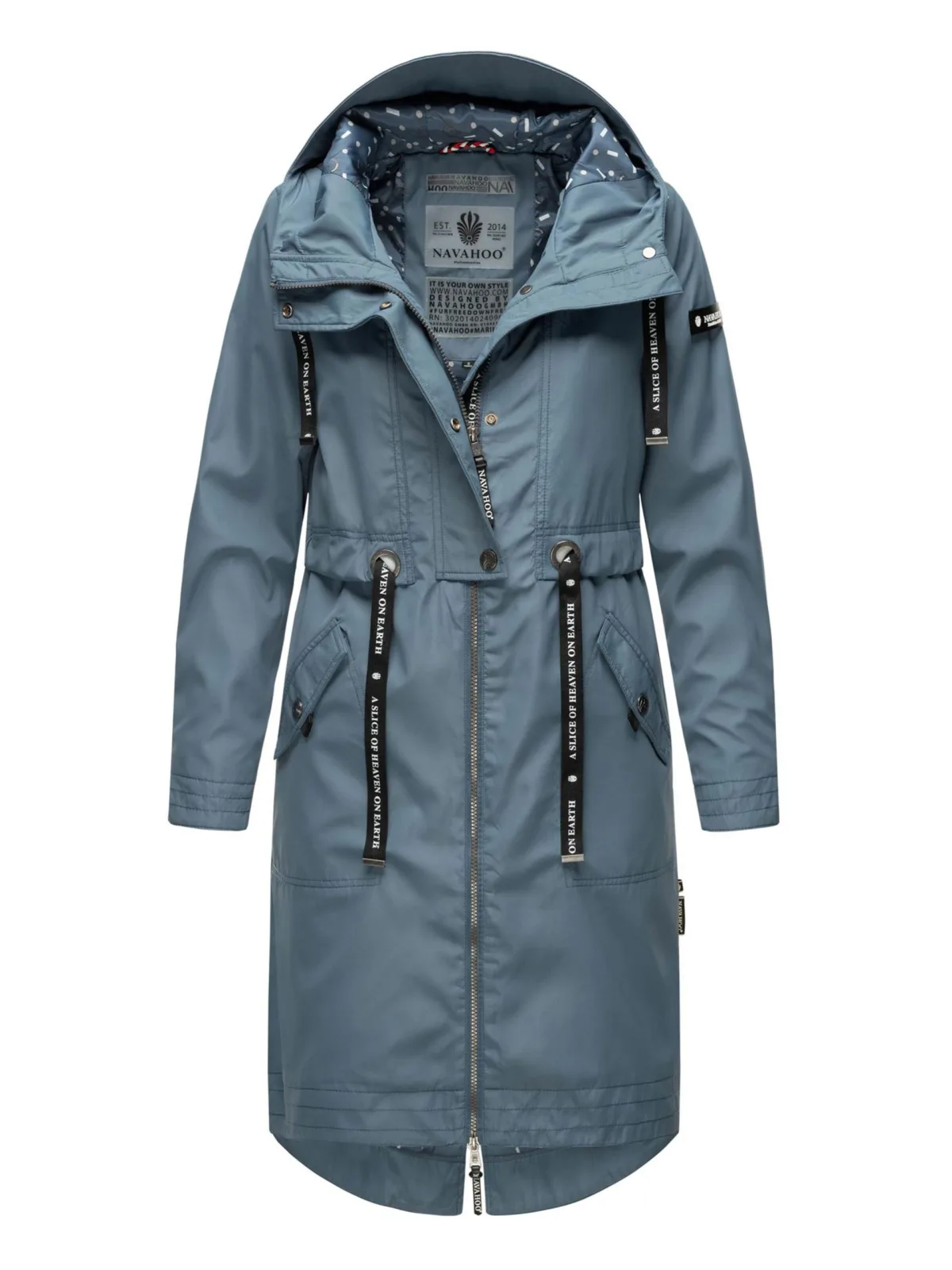 De Josinaa tussenmantel van Navahoo is de perfecte jas voor het tussenseizoen. Licht, ongevoerd en zeer comfortabel, met een ideale lengte, een modern design en stijlvolle details. De hoge kraag beschermt tegen wind en kou, terwijl de praktische binnenzak met rits en opening voor koptelefoonkabels samen met twee voorzakken met drukknoop extra gemak bieden. Dankzij het taillekoord en de capuchon met stijlvolle koord kan de pasvorm naar wens worden aangepast. Verkrijgbaar in verschillende kleuren en maten XS–3XL. Materiaal: Bovenstof 100% polyester, voering 100% polyester.