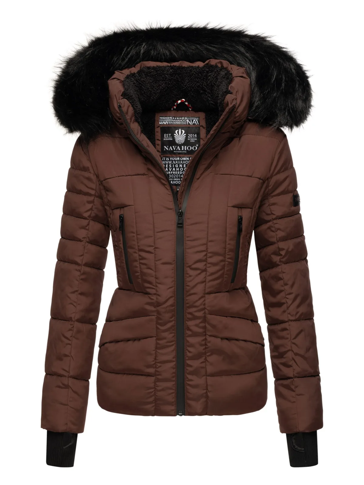 Navahoo Dames Winterjas Adele Warm, Met Teddyvoering & Afneembare Bontkraag