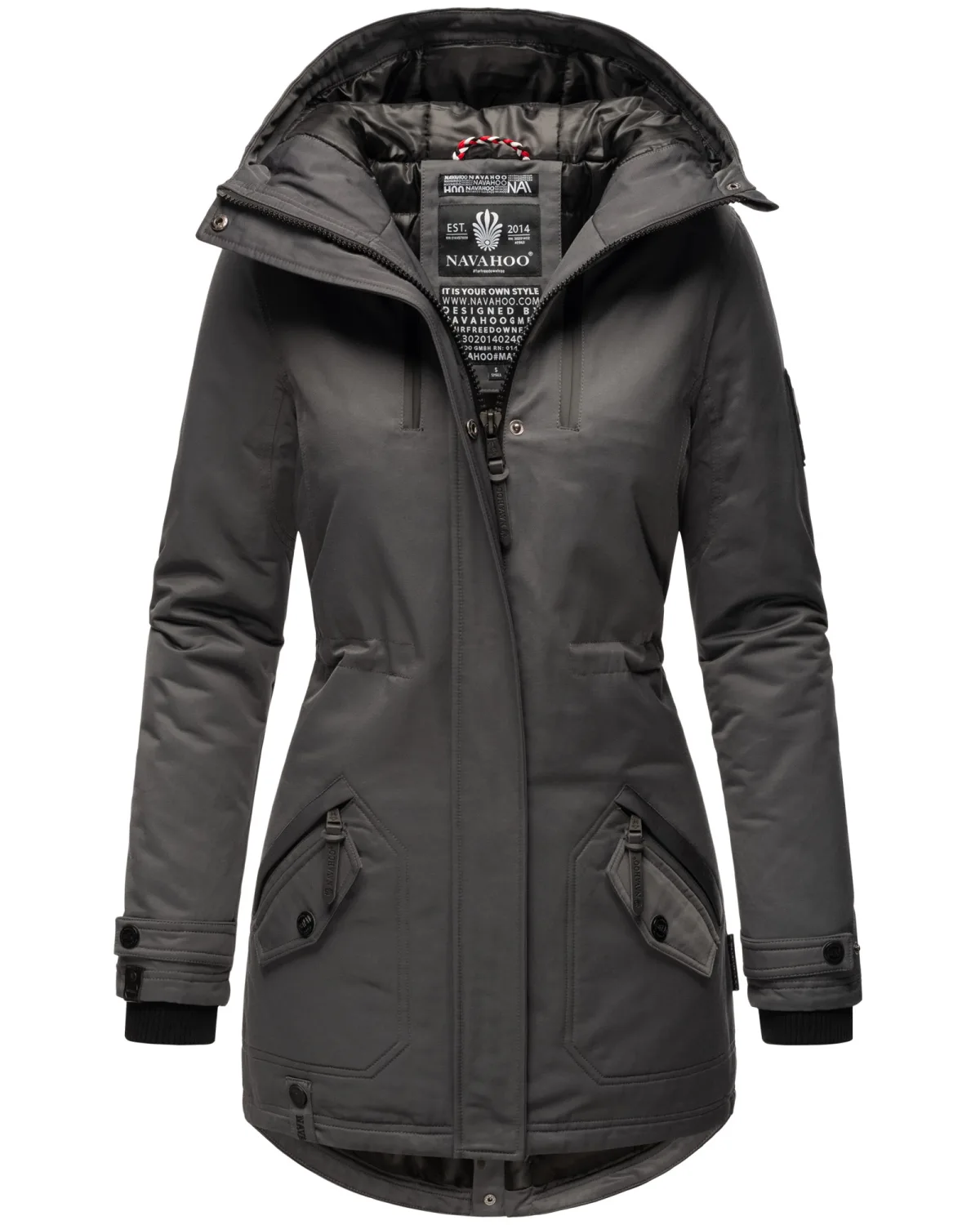 De dames winterjas Avrille van Navahoo overtuigt door zijn ideale lengte, warme voering en stijlvolle details. Het hoogwaardige bovenmateriaal en het quiltpatroon aan de binnenkant zorgen voor comfort en duurzaamheid, terwijl de hoge, gevoerde kraag betrouwbaar beschermt tegen wind en kou. Meerdere zakken – deels met fleecevoering – bieden zowel warmte als praktisch gebruiksgemak. Een verstelbaar trekkoord in de taille zorgt voor een flatterende pasvorm. Kunstleren logodetails en verfijnde accenten onderstrepen de premium uitstraling. Met een stevige tweewegrits en knoopsluiting is deze jas de ideale metgezel voor koude winterdagen. Materiaal: Bovenstof 70% katoen, 30% polyester; voering 100% polyester; vulling 100% polyester.