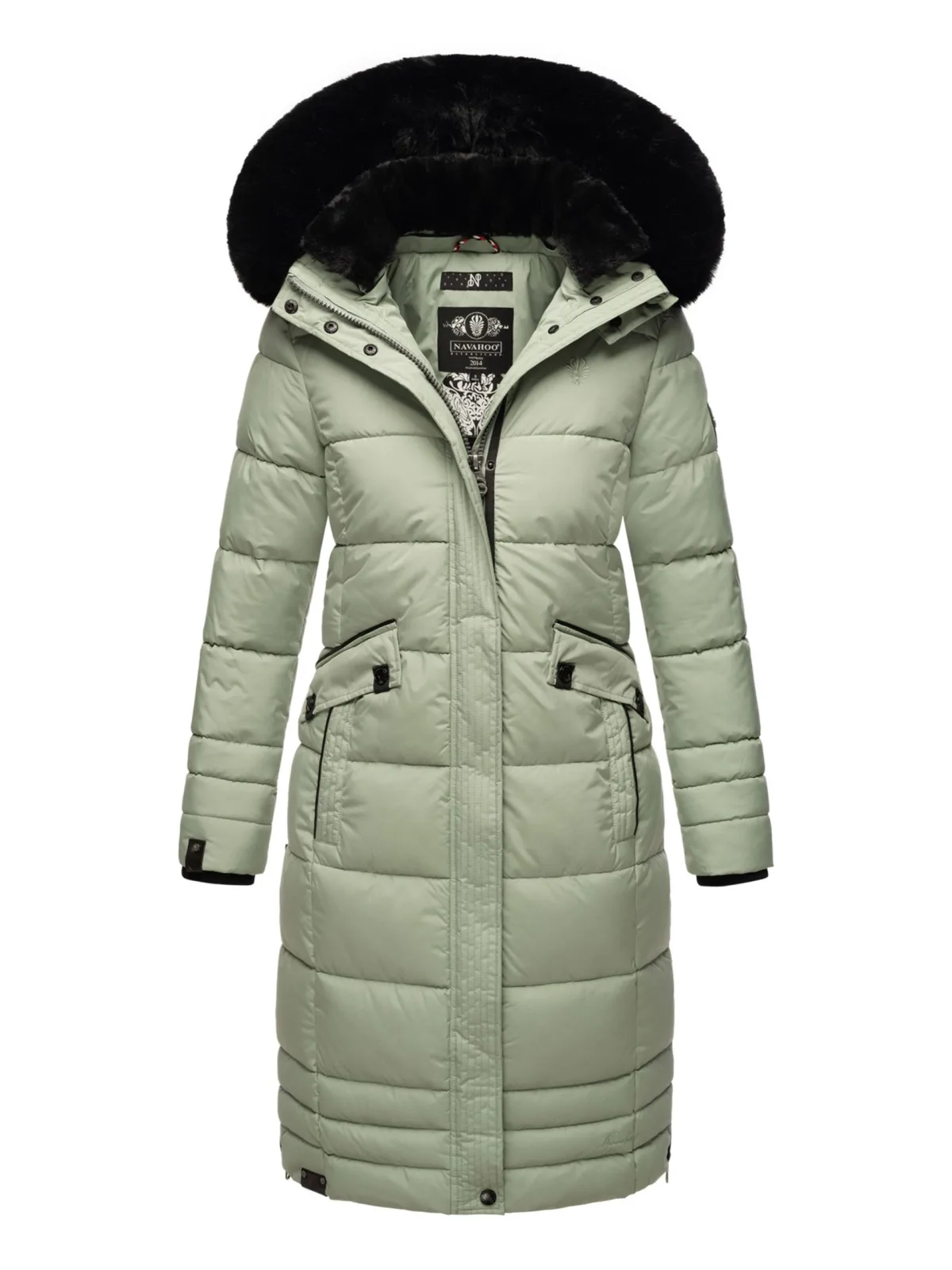 De winterjas Fahmiyaa van Navahoo valt op door zijn lange snit en warme voering, die uitstekende bescherming biedt tijdens koude dagen. De hoge kraag in combinatie met de capuchon en grote kunstbontkraag beschermt betrouwbaar tegen wind en kou. Functionele details zoals een afneembare capuchon en bontkraag, verstelbare mouwuiteinden met ritsen en zijkanten met ritsen maken de jas bijzonder praktisch. De binnenkant heeft een stijlvol gewatteerd patroon, terwijl robuuste ritsen, drukknoopsluitingen en fleecegevoerde zakken voor extra draagcomfort zorgen. Logodetails maken het ontwerp compleet. Materiaal: Bovenstof 100% polyester, voering 100% polyester, vulling 100% polyester, kunstbont 100% polyester.