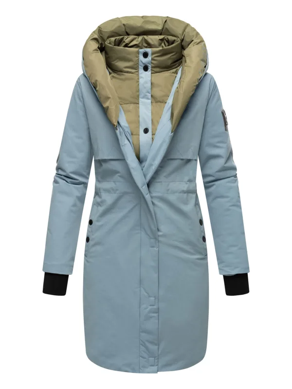 NAVAHOO Wintermantel 'Snowelf' smoky blue / donkergroen / zwart
