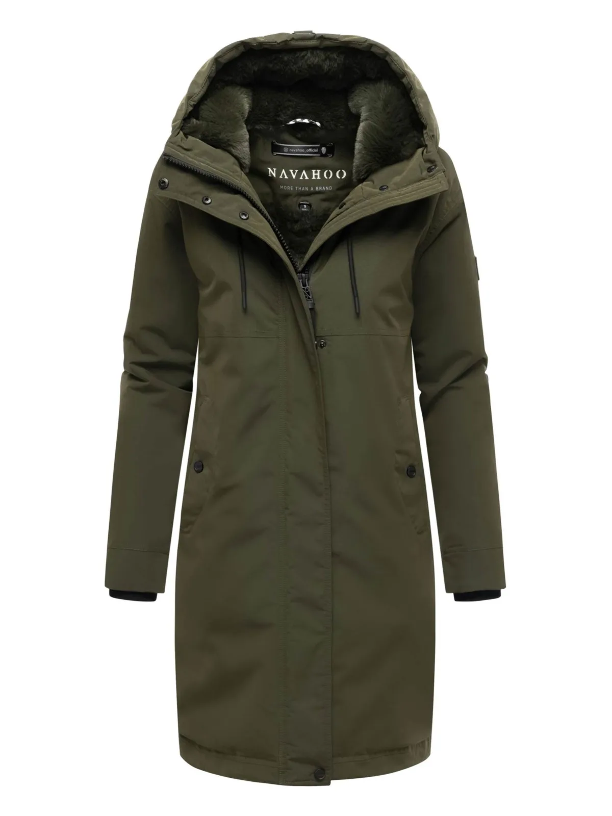 De Hageltanz parka van Navahoo combineert een urban design met functionele details. Glad aan de buitenkant, zacht imitatiebont aan de bovenkant van de binnenzijde en licht gewatteerd aan de onderkant – perfect voor koude winterdagen. Gevoerde capuchon met trekkoord, hoge kraag en verborgen tweewegsritssluiting zorgen voor betrouwbare bescherming. Buitenzakken met fleecevoering en veilige binnenzakken met rits voor praktisch gebruik. Lang model met geribde boorden en verstelbare split. Furfree. Verkrijgbaar in 7 kleuren en maten S–6XL.