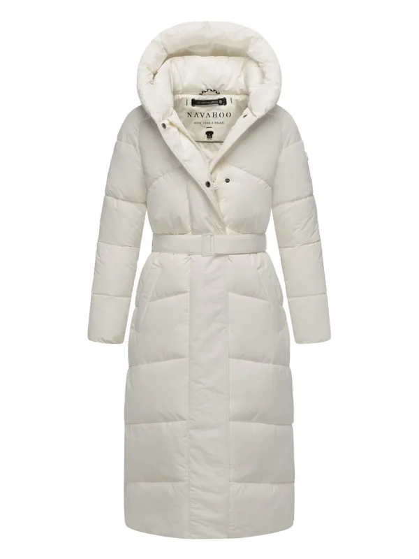 De Eisblick gewatteerde mantel van Navahoo combineert stijlvol design met warmte en functionaliteit. Een vaste capuchon, hoge kraag en winddichte afwerking beschermen tegen kou. De tailleriem en diagonale stiksels zorgen voor een flatterend silhouet. Praktische zakken en elastische boorden maken het geheel compleet. Verkrijgbaar in 7 kleuren en maten S–XXL.