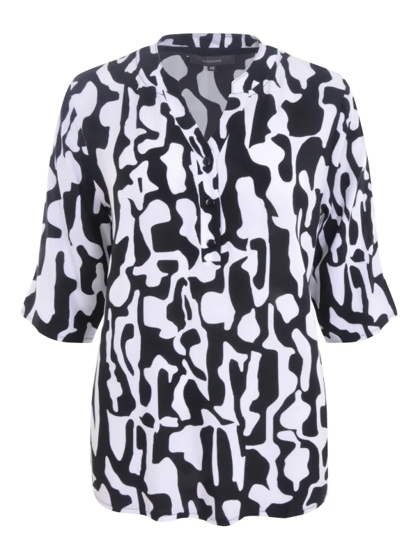 Design: Gevoerde zoom/rand; Type sluiting: Knoopsluiting; Materiaal: Viscose; Kraag: Tuniek kraag; Extra's: All-over patroon; Pasvorm: Normale pasvorm; Armlengte: Driekwart mouw; Lengte: Lange pasvorm