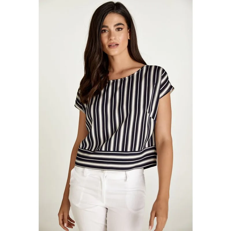Specificaties: Navy gestreepte top met boothals