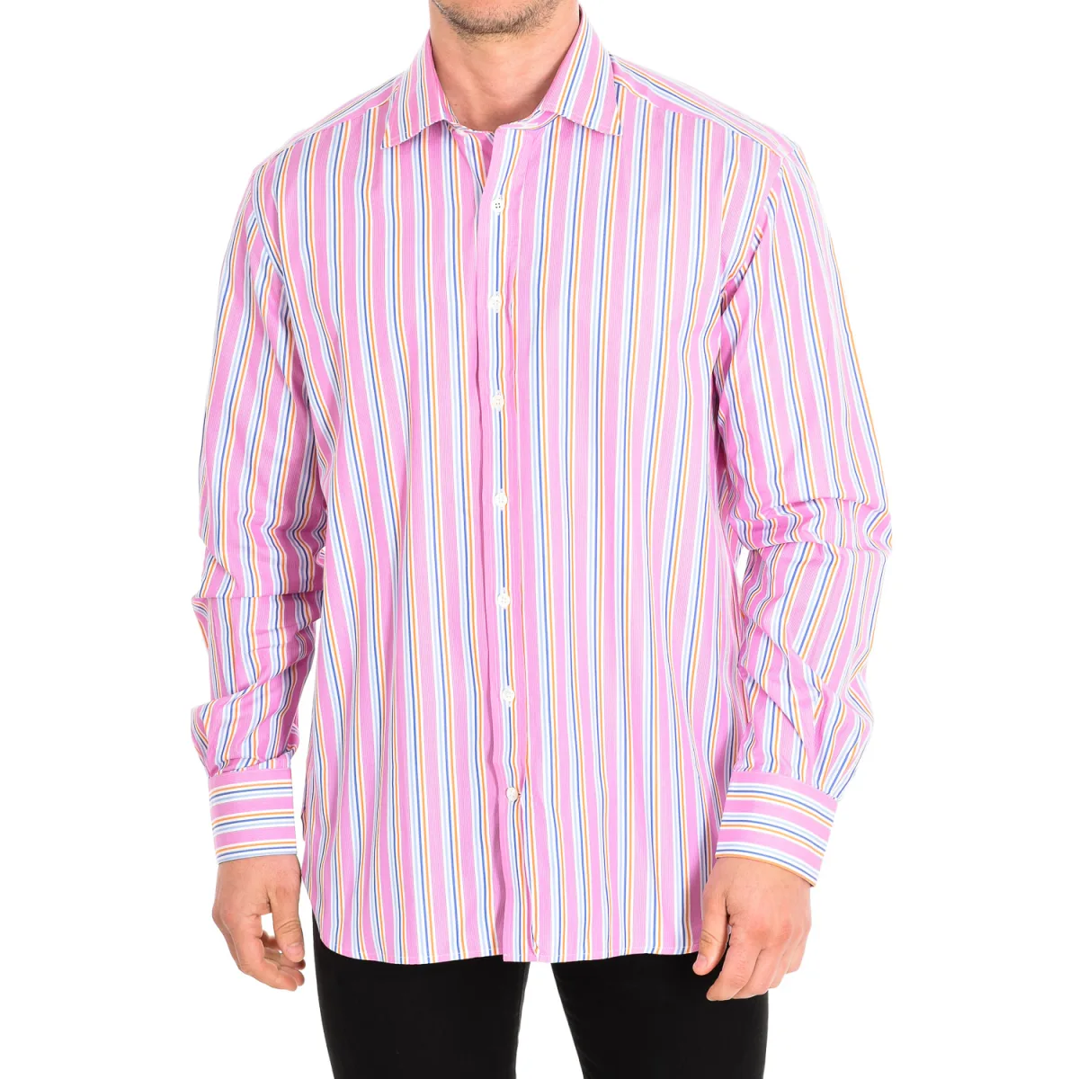 Koffie Katoenen shirt met lange mouwen. Kleur roze-multicolor strepen Kraag met kapel. Knoopsluiting aan de voorkant. Manchetten met knoop. Naden in toon zichtbaar. Samenstelling: 100% katoen Wassen op maximaal 40ºC. - Strijken op gemiddelde temperatuur, max. 100ºC. - Je kunt een droger gebruiken. - Niet bleken. - Mag niet chemisch gereinigd worden.
