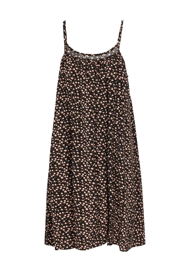 Design: Gevoerde zoom/rand, Rechte zoom; Materiaal: Viscose; Motief: Bloemenprint; Soort bandjes: Spaghettibandjes; Details: Gedrapeerd; Extra's: All-over patroon, Koele grip; Lengte: Kort/mini; Pasvorm: Losse pasvorm; Armlengte: Mouwloos