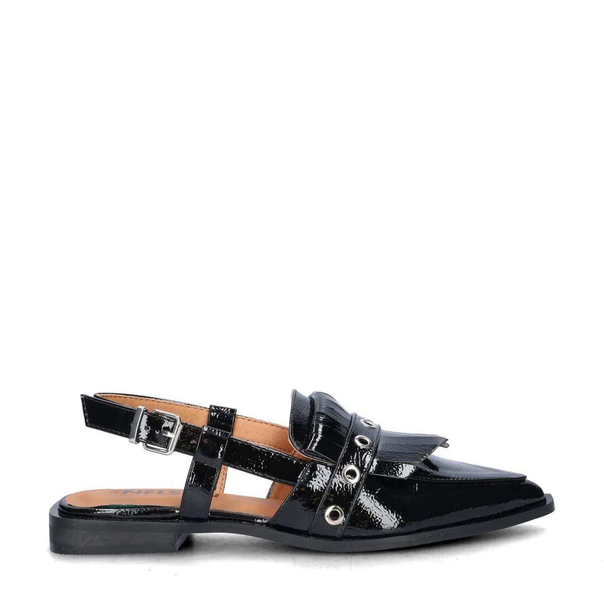 Nelson dames ballerina Loop jij graag met de trends mee en zie jij er iedere dag tiptop uit? Dan zijn deze slingbakc echt iets voor jou! Uitgevoerd in lak wat een opvallende look geeft en je outfit een boost geeft. Gevoerd met imitatieleer. Voorzien van een imitatieleren voetbed met dempend kussen over de lengte van de voet voor een aangenaam draaggevoel. Afgewerkt met een rubberen loopzool.