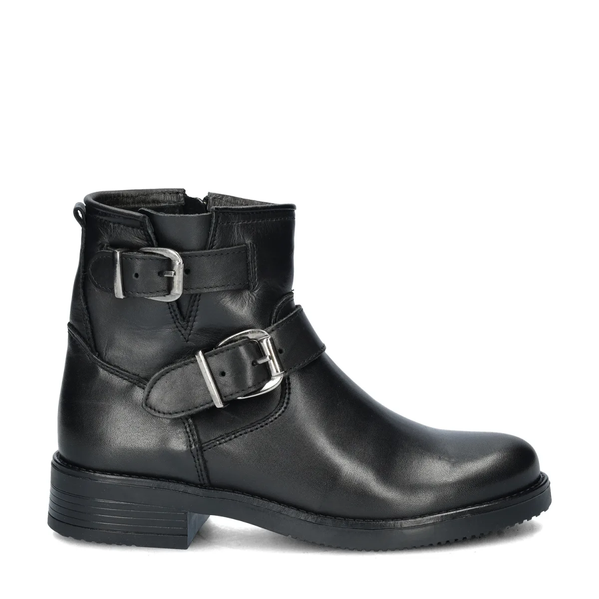 Nelson dames bikerboot Deze te gekke zwarte bikerboot met gespen is van ons eigen merk. Uitgevoerd in leer, met twee grote gespen ter decoratie. Voorzien van een handige rits aan de binnenkant. Gevoerd met comfortabel textiel voor een aangenaam draaggevoel. Het voetbed is van leer. Leer jeeft een goed ademend vermogen waardoor de voeten droog en fris zijn. De rubberen zool biedt goede grip.