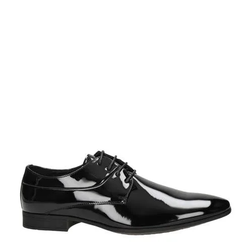 Nelson heren nette schoen Kom goed voor de dag met deze lak veterschoen uit onze Nelson collectie. Perfect voor een bruiloft. Uitgevoerd in imitatieleer met laklaag wat de schoen een chiwue look geeft. Gevoerd met imitatieleer. Voorzien van een foam-voetbed met imitatieleren bekleding. Het foam biedt een comfortabele demping tijdens het lopen. Afgewerkt met een rubberen loopzool.