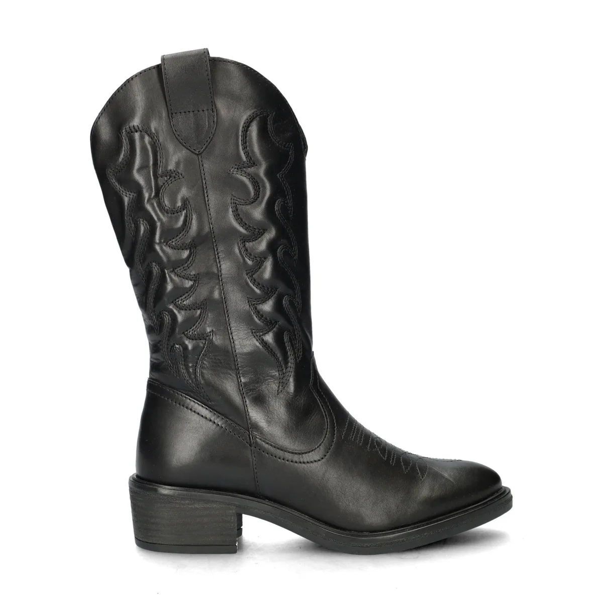 Nelson dames cowboylaars De Western-trend is nog steeds in volle gang en ook dit seizoen kun je genieten van stijlvolle cowboyboots. Uitgevoerd in leer met decoratieve stiksels wat de boot een echte western uitstraling geeft. Gevoerd met textiel en licht gewatteerd voor extra comfort en warmte tijdens de herfstmaanden. Voorzien van een leren voetbed die lichte demping biedt tijdens het lopen. Afgewerkt met een rubberen loopzool en stevige blokhak.