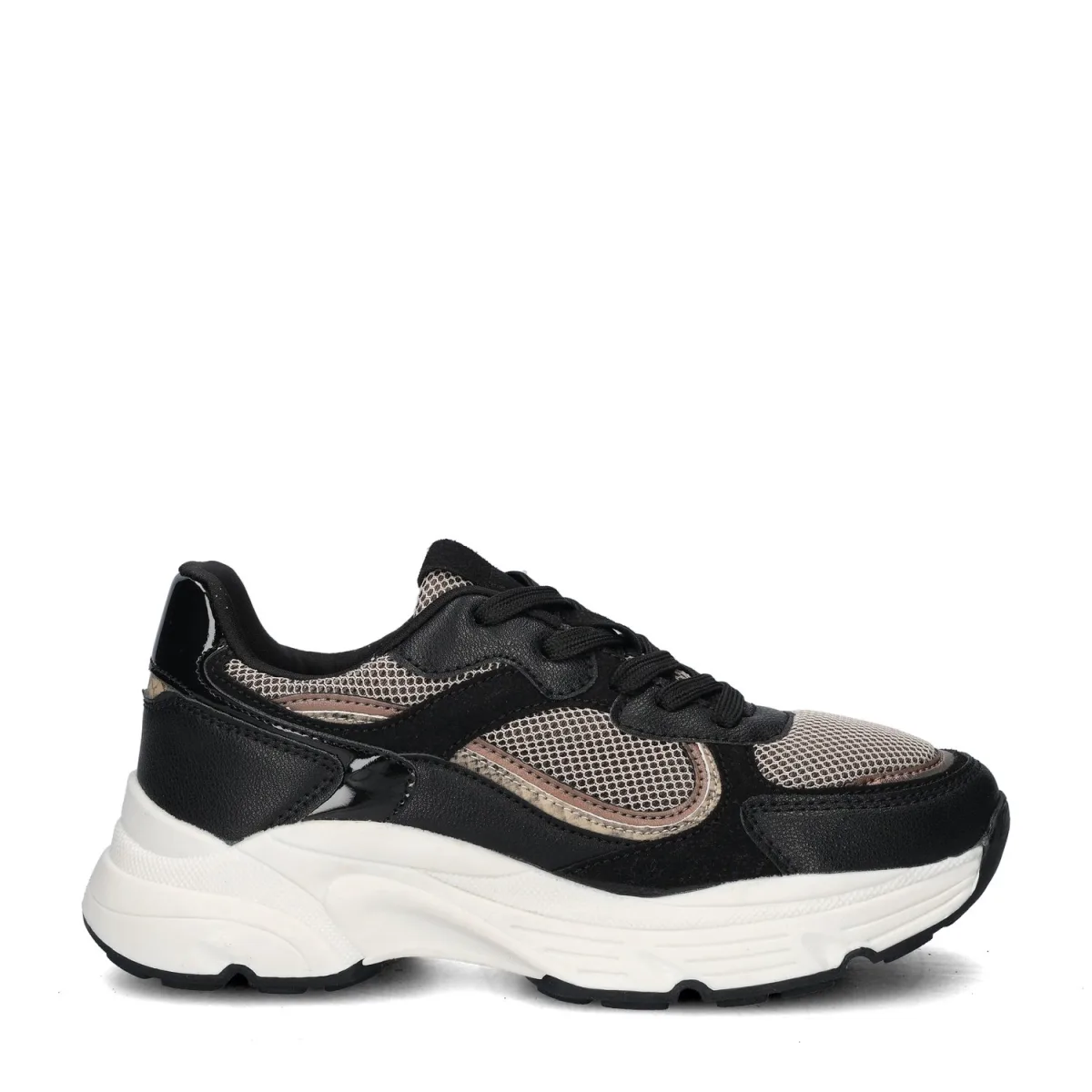 Nelson dames sneaker Deze chunky sneakers geven je look een casual finish met een edge. Ook leuk te combineren met een oversized monochrome pak. Uitgevoerd in textiel en imitatieleer. De mesh-textielen panelen zorgen voor een betere doorademing. Gevoerd met zacht textiel en voorzien van een gewatteerde hielkap voor meer comfort en zachtheid. Bevat een memoryfoam-voetbed die voor comfortabele demping zorgt tijdens het lopen. Het voetbed is tevens uitneembaar wat de sneaker ook geschikt maakt voor eigen steunzolen. Afgewerk met een chunky loopzool van rubber.