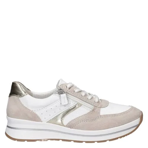 De beige/witte Nelson Flex dames sneaker is een basis voor iedere dag. De combinatie van soepel leer en zacht suède zorgt voor een aansluitende pasvorm en een frisse voet, ook als je veel loopt. Het materiaal vormt zich naar je voet en sluit mooi aan, terwijl de lage snit rond de enkel luchtig aanvoelt.Comfort bij elke stap Bovenkant van leer met suède voor een soepele pasvorm en goede ventilatie Volledig met leer gevoerd voor een aangenaam voetklimaat Gewatteerde hielkap helpt wrijving te verminderen Leren voetbed met foam-onderlaag voor zachte demping Uitneembaar voetbed, geschikt voor eigen inlegzolen Rits en vetersluiting, handig aan- en uittrekken met een persoonlijke pasvorm Rubberen loopzool met flexibele afwikkeling en goede grip Normale leest, geschikt voor de meeste voetvormenBeige sneaker voor alledaagse outfitsDe beige en witte kleur laat zich eenvoudig combineren met je dagelijkse garderobe. Van een jeans en T-shirt tot een luchtige jurk, deze lage sneaker past bij veel looks. De platte zool geeft je een stabiele basis bij boodschappen, een dag in de stad of een wandeling met het gezin.Nelson schoenenexpertiseNelson is al jaren een vertrouwde naam in schoenen. De Flex lijn draait om soepel lopen en draaggemak, met aandacht voor materialen en afwerking. Je kiest voor een sneaker waarin de ervaring van een schoenenspeciaalzaak terugkomt in elk detail.Een geschikte keuze voor dagen waarop je voeten zacht en goed ondersteund mogen aanvoelen.