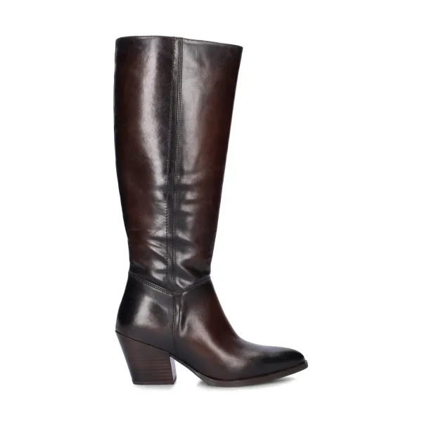 Deze hoge laars van Nelson heeft een western hakvorm en een ritssluiting. De buitenkant is gemaakt van leer de voering van textiel. Met deze laars stap je makkelijk in en draag je hem bij jouw dagelijkse outfits.