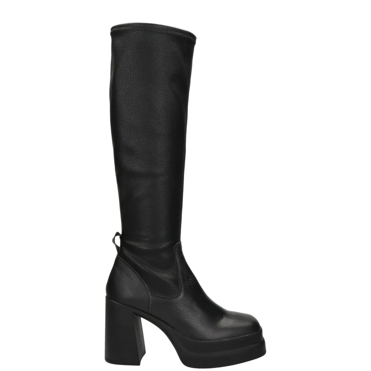 Nelson dames hoge laars Deze laars uit onze Nelson collectie is een echt mode statement! Geef elke outfit een edgy twist. Vervaardigd uit een combinatie van leer en imitatieleer. De rekbare schacht zorgt voor een mooie aansluiting om de benen. Gevoerd met zacht fleece-textiel voor een aangenaam draagcomfort. Het leren voetbed biedt een fijne demping tijdens het lopen. Voorzien van een opvallende hak en plateauzool die de boot zijn trendy uiterlijk geeft.