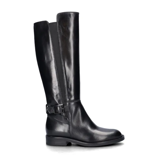 Nelson dames hoge laars Een elegante hoge laars met een stoere twist. Een laars is een echte must dit seizoen en wanner je niet graag op hakken loopt is deze perfect! Uitgevoerd in leer met elastische insets die een aansluitende pasvorm garanderen. Het leer loopt bovendien naar de voet voor een comfortabele pasvorm. Gevoerd met textiel wat zorgt voor een fijn draaggevoel en de benen warm houdt. Voorzien van een leren voetbed wat met de goede vocht- en warmteregulatie de voeten koel en fris houdt. Afgewerkt met een rubberen loopzool.