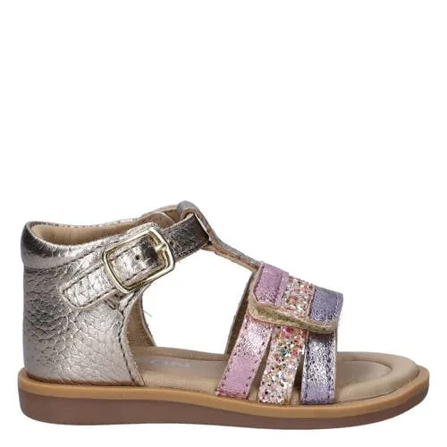 Nelson Kids leren sandalen champagne/roze/paars