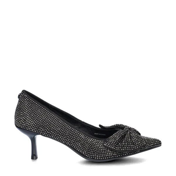Nelson dames pump Maak je outfit stralend met deze leuke pumps. Uitgevoerd in textiel en volledig bedekt met glinsterende steentjes. De pump heeft een imitatieleren voering. Voorzien van een dempend voetbed die een aangenaam draaggevoel biedt. Afgewerkt met een rubberen loopzool met goede grip en elegante kitten heel.