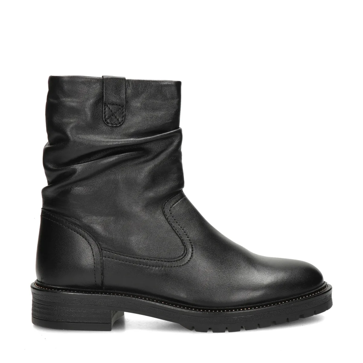 Nelson dames boot Deze leuke boot uit onze Nelson-collecties is perfect voor een casual herfst-look. Uitgevoerd in soepel leer met plooien op de schacht en een handige rits aan de binnenzijde. Gevoerd met velboa. Dit kortharig imitatiebont is heerlijk zacht en houdt de voeten lekker warm. Voorzien van een leren voetbed voor lichte demping tijdens het lopen. Afgewerkt met een rubberen loopzool met grof profiel waardoor je goede grip en stabiliteit hebt.