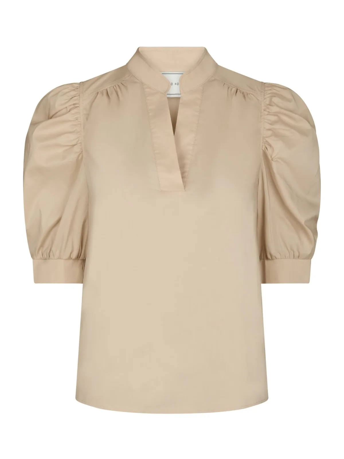 Blouse Roella van Neo Noir is een elegante dames blouse met een opstaande kraag, split halslijn en brede manchetten. De 3 kwart mouwen en de regular pasvorm maken het geschikt voor nette gelegenheden. Het effen patroon en de vrouwelijke stijl zorgen voor een veelzijdige uitstraling.