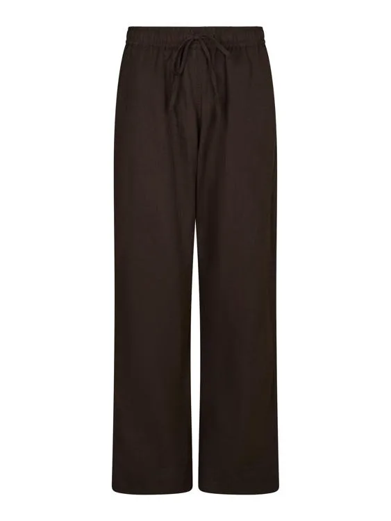 Dames stoffen broek van Neo Noir;Katoenmix met linnenanteil;Uitlopend model;Model 'Sonar';elastische band;Franse steekzakken;Bandwijdte bij maat 36: 36 cm;Binnenbeenlengte bij maat 36: 79 cm