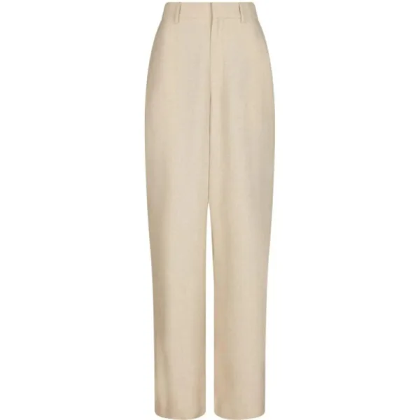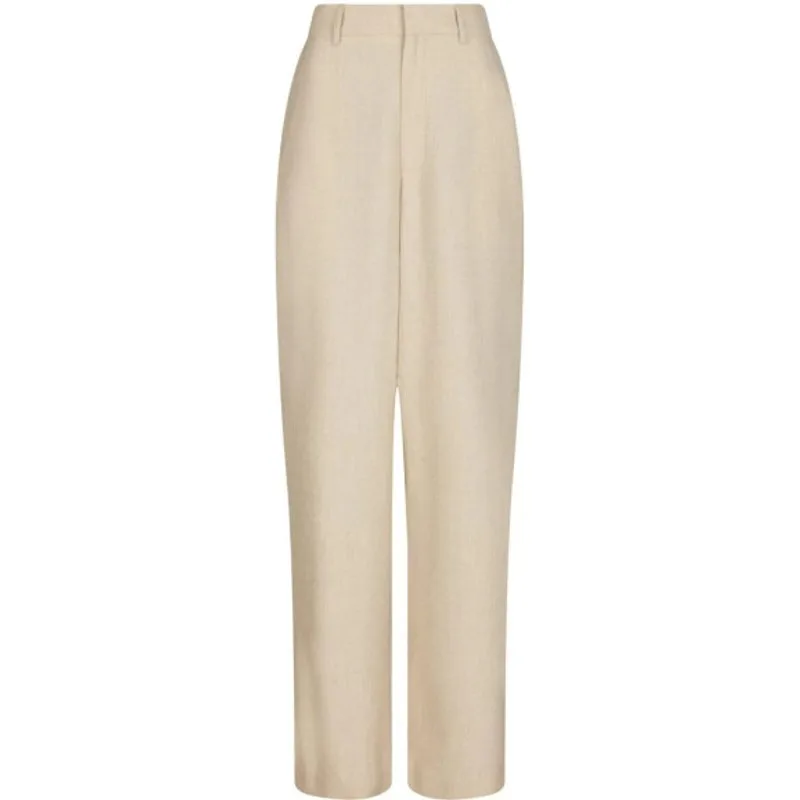 High-waisted broeken van Neo Noir in beige melange. De broeken hebben een brede pijp en reiken tot de vloer.64% Polyester, 30% Viscose, 5% Elastaan, 1% Wol Hoge tailleRegular fitRits en knopen in de sluitingVloerlengte
