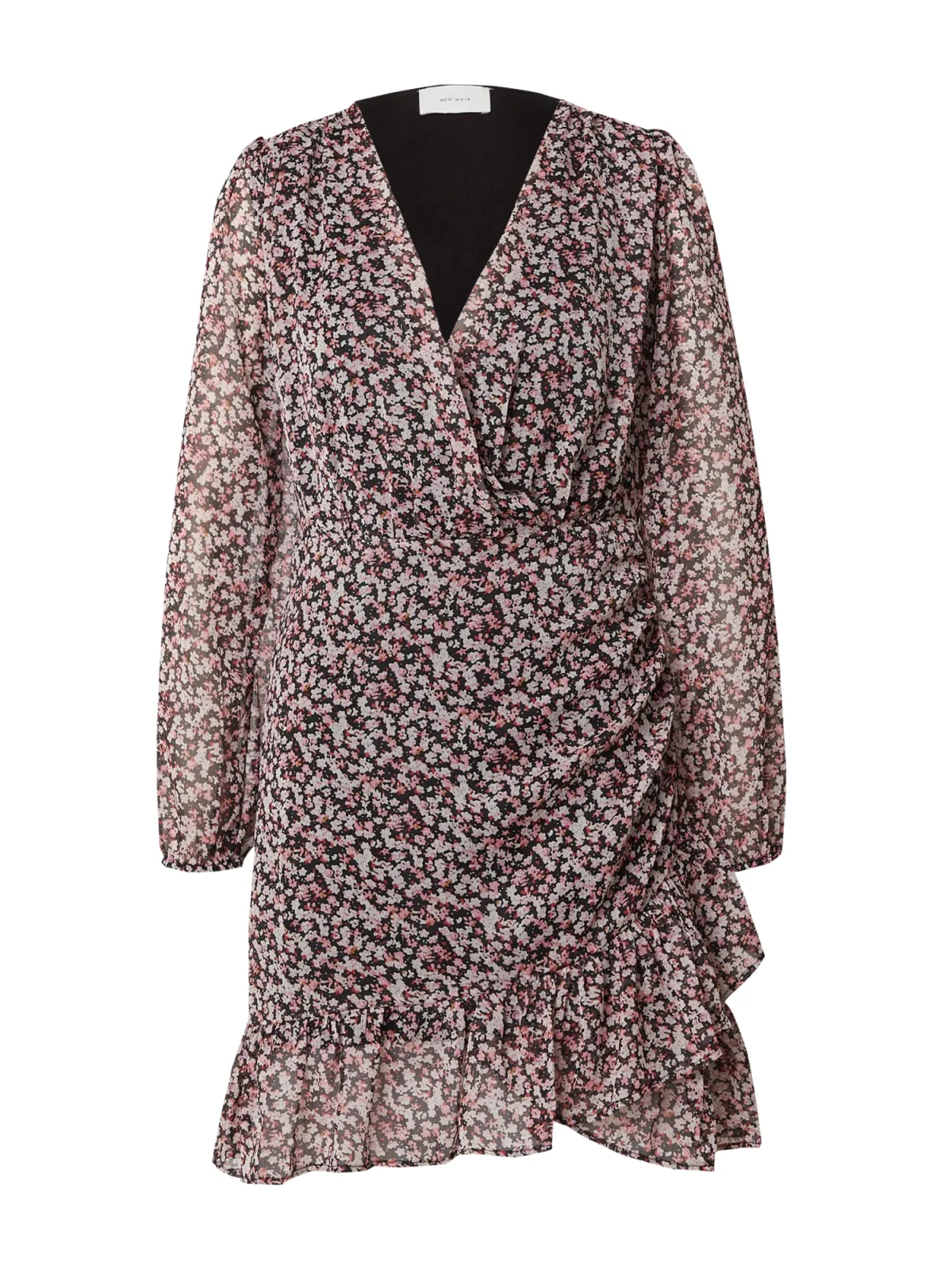 Materiaal: Chiffon; Halstype: V-hals; Motief: Bloemenprint; Details: Volant, Gedrapeerd, Wikkel design; Lengte: Knielengte; Pasvorm: Normale pasvorm; Armlengte: Lange mouw