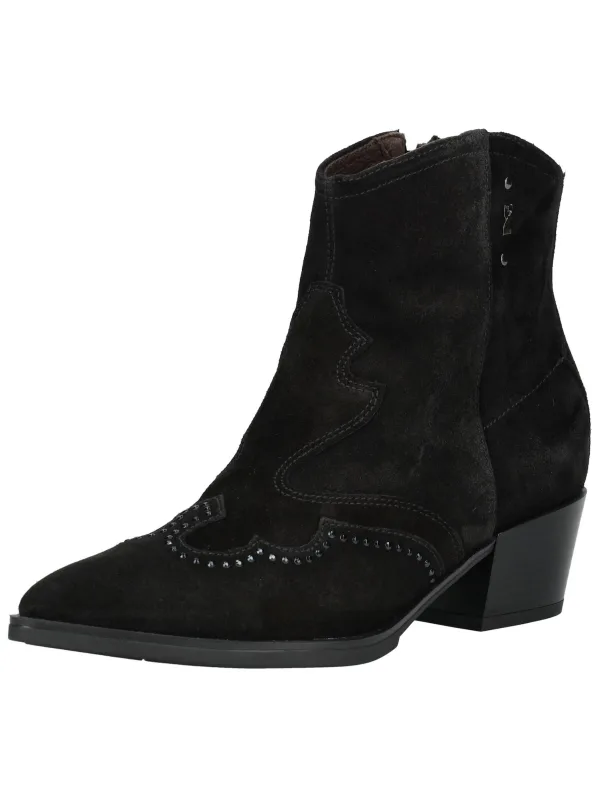 Design: Ritszakken aan de zijkant; Type sluiting: Ritssluiting; Type hak: Trechterhak; Materiaal: Leer; Motief: Effen; Materiaal: Suède; Schoenneus: Spitse neus; Extra's: Studs, Label plaatje, Op staal naden, Flexibele zool; Hakhoogte: Middelhoge hak (3-7 cm)