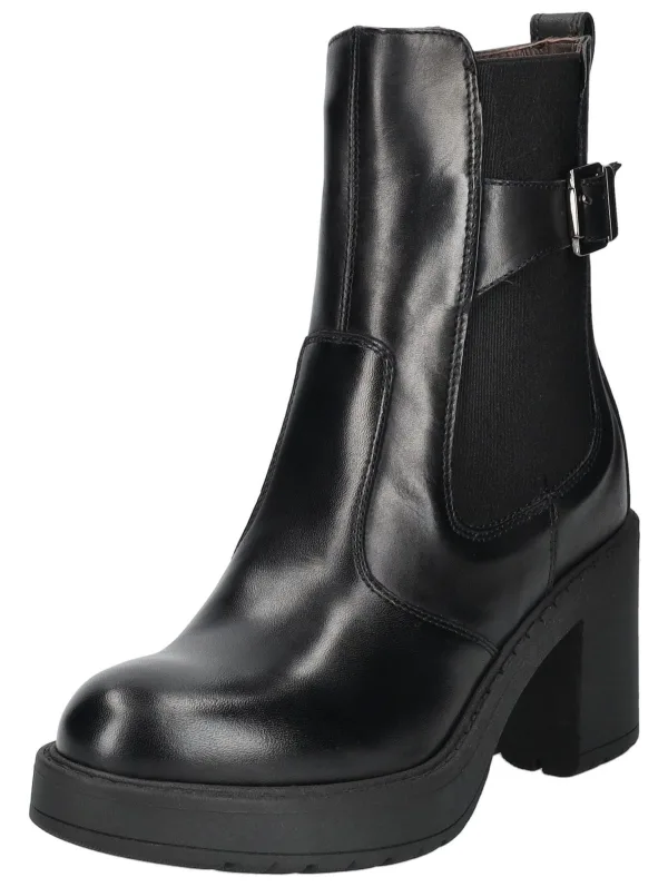 Design: Ritszakken aan de zijkant, Elastische inzetstukken; Type sluiting: Ritssluiting; Type hak: Blokhak; Materiaal: Leer; Motief: Effen; Materiaal: Glad leer, Textiel; Schoenneus: Ronde neus; Extra's: Op staal naden; Hakhoogte: Hoge hak (7-10 cm)