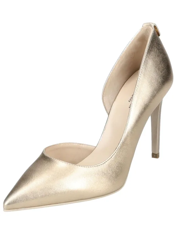 Design: Gevoerd, Versterkte hak, Elastische inserts; Type sluiting: Slip; Type hak: Stiletto; Materiaal: Leer; Motief: Effen; Materiaal: Glad leer; Schoenneus: Spitse neus; Extra’s: Label plaatje, Flexibele zool, Metallic look; Hakhoogte: Hoge hak (7-10 cm)