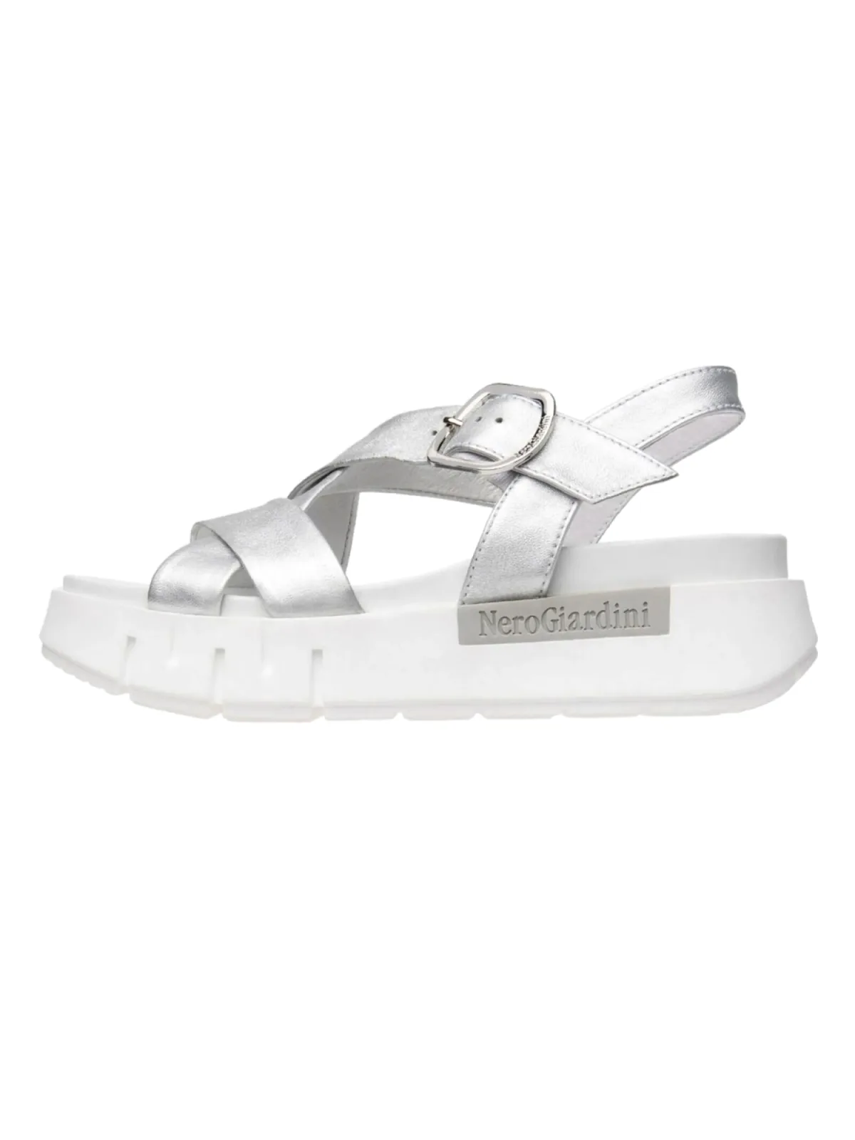 De sandalen van NeroGiardini combineren een moderne metallic uitstraling met persoonlijkheid en een herkenbare stijl die zowel casual als elegant is. Brede banden en een stabiele gesp zorgen voor een veilige pasvorm, terwijl de markante plateauzool met een comfortabele hoogte van vier centimeter een modieus statement maakt. De open schoenpunt benadrukt de zomerse lichtheid van het ontwerp, dat door een subtiel logo-detail zijn afkomst stijlvol onderstreept. In Italië vervaardigd, is elk model een uiting van traditionele ambacht, verfijnd door innovatieve technieken en een gevoel voor actuele trends. De modellen zijn ontworpen om van 's ochtends tot 's avonds comfort en veelzijdigheid te bieden – voor vrouwen die in elke situatie stijlvol voor de dag willen komen. De Italiaanse Tricolore, gedrukt op de zool en verpakking, staat daarbij zichtbaar voor de echtheid en kwaliteit van 'Made in Italy'.