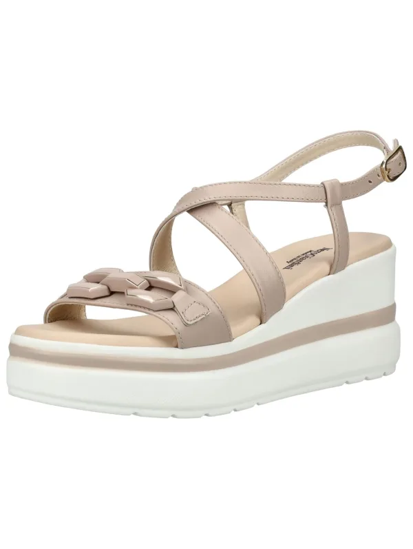 Design: Gevoerd, Profielzolen, Verstelbare riemen; Type sluiting: Riemsluiting; Type hak: Sleehak; Materiaal: Leer; Motief: Effen; Plateau: Met plateau; Materiaal: Glad leer; Schoenneus: Open toe; Extra's: Stevige stof, Flexibele zool; Hakhoogte: Middelhoge hak (3-7 cm)