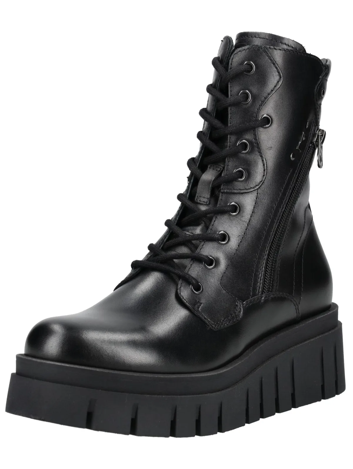 Design: Luchtdoorlaatbare inlegzool, Ritszakken aan de zijkant; Type sluiting: Snoersluiting; Type hak: Sleehak; Materiaal: Leer; Motief: Effen; Plateau: Met plateau; Materiaal: Glad leer; Schoenneus: Ronde neus; Extra's: Crêpezool; Voering: Warm gevoerd; Hakhoogte: Middelhoge hak (3-7 cm)