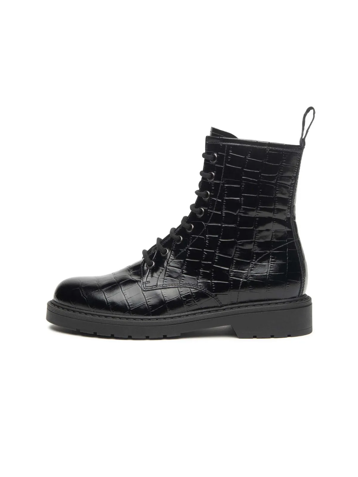 Design: Vetering, Profielzolen; Type sluiting: Snoersluiting; Type hak: Blokhak; Materiaal: Leer; Motief: Effen; Plateau: Met plateau; Materiaal: Glad leer; Schoenneus: Ronde neus; Extra's: Glanzend, Op staal naden; Hakhoogte: Platte hak (0-3 cm)