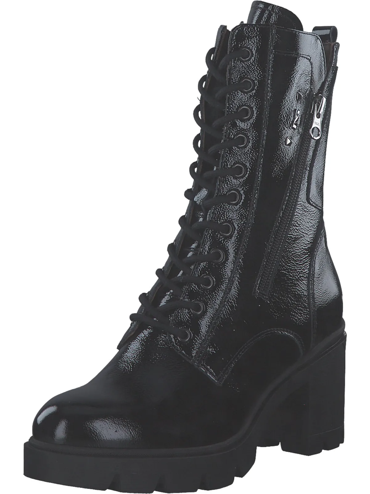 Design: Vetering, Ritszakken aan de zijkant, Profielzolen; Type sluiting: Ritssluiting; Type hak: Blokhak; Materiaal: Leer; Motief: Effen; Plateau: Met plateau; Materiaal: Glad leer; Schoenneus: Ronde neus; Extra’s: Label plaatje, Op staal naden; Hakhoogte: Hoge hak (7-10 cm)
