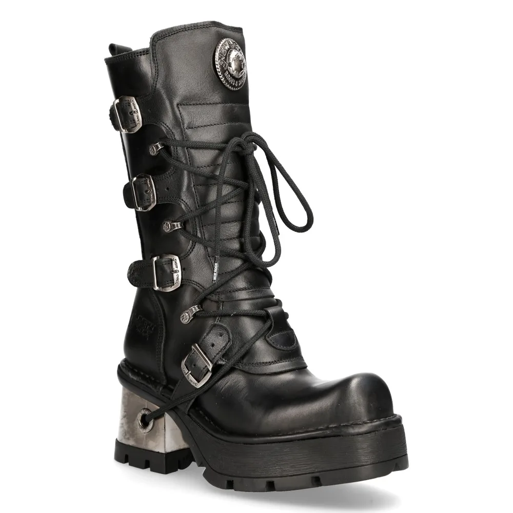 New Rock leren gothic halfhoge kuitlaarzen voor dames-373-S33 Prijzen