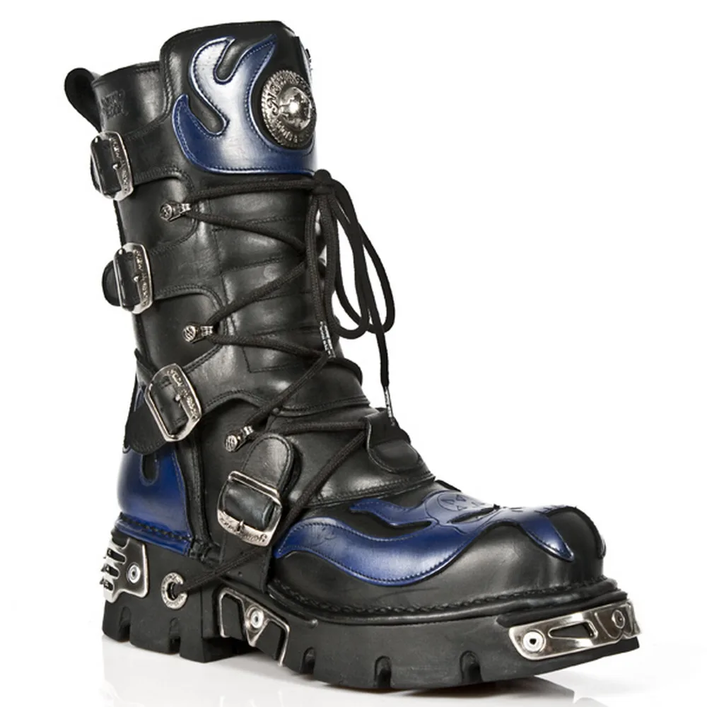 New Rock Unisex Zwart/Blauw Leer Gothic Biker Skull Boots-107-C5