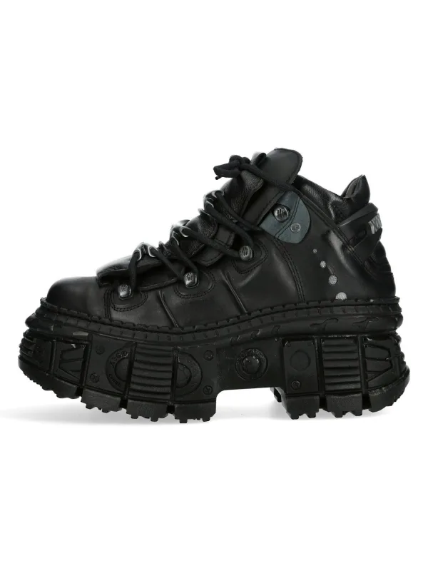 New Rock metalen enkel zwarte leren laarzen-WALL106-S12