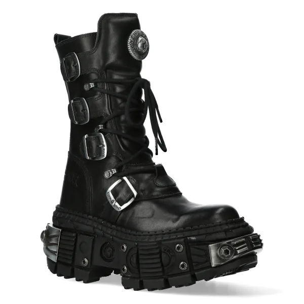 New Rock zwarte halfhoge lederen Goth-laarzen-WALL1473-S11 Prijzen