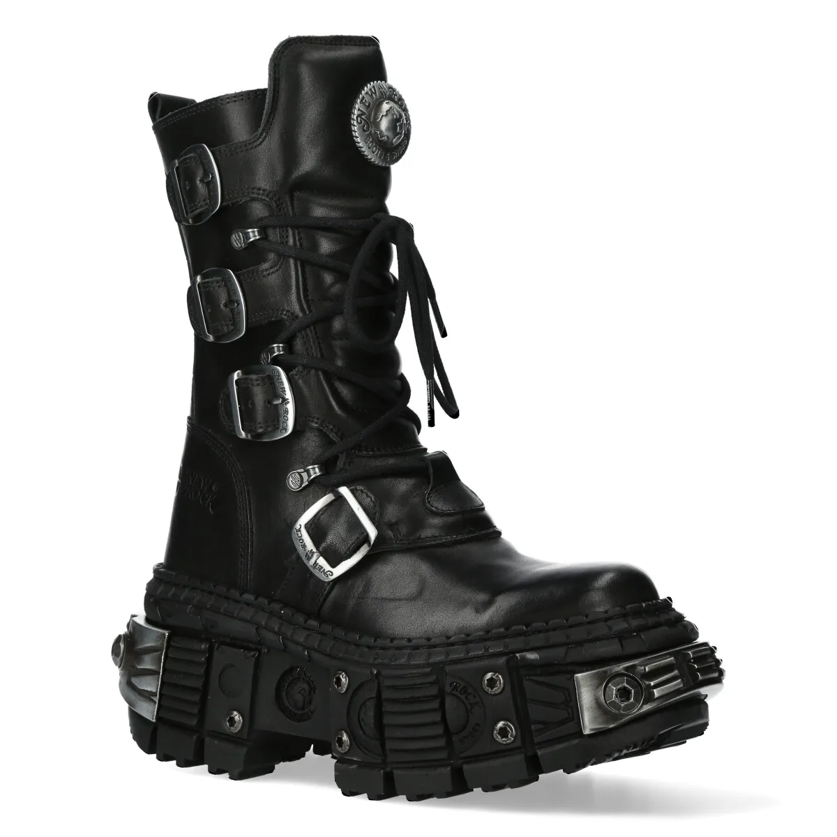 New Rock zwarte halfhoge lederen GothlaarzenWALL1473S11