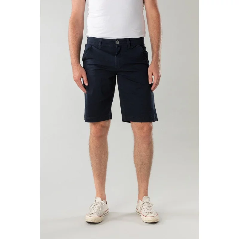 Deze donkerblauwe korte broek is van New Star. Deze korte bermuda bestaat uit 98% katoen en 2% elastaan. Deze broek heeft steekzakken en een knoop met ritssluiting.