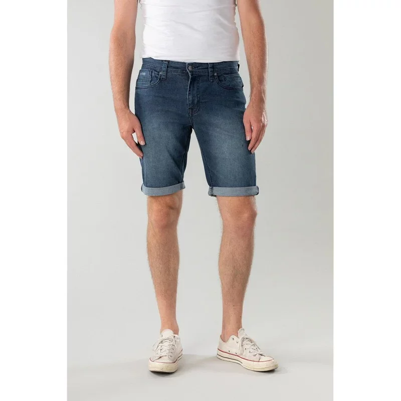 Deze blauwe korte jeans is een slim fit spijkerbroek met stretch. Doordat deze spijkerbroek uit 71% katoen, 27% polyester en 2% elastaan bestaat, draagt deze jeans erg comfortabel. De spijkerbroek is voorzien van zes zakken.
