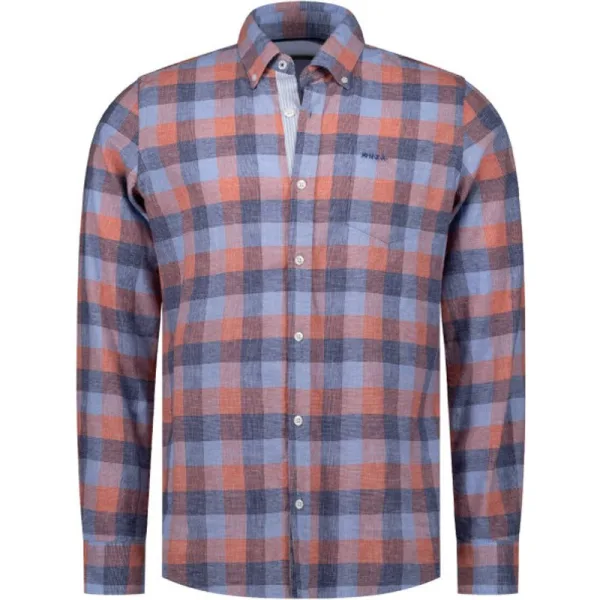 Casual linnen geruit heren overhemd met handig borstzakje van New Zealand Auckland. Regular fit Borstzakje 53% linnen/ 44% katoen Kleurnummer: 1508
