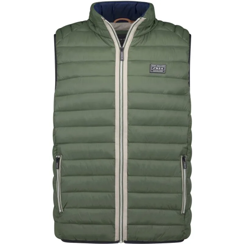 Casual gewatteerde heren bodywarmer van het merk New Zealand Auckland. Regular fit 100% Polyamide Kleurnummer Ecru: 1107 Kleurnummer Olijf: 1765