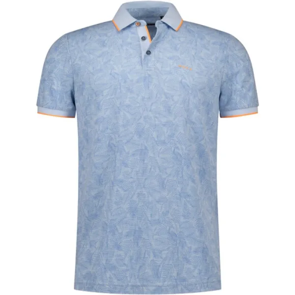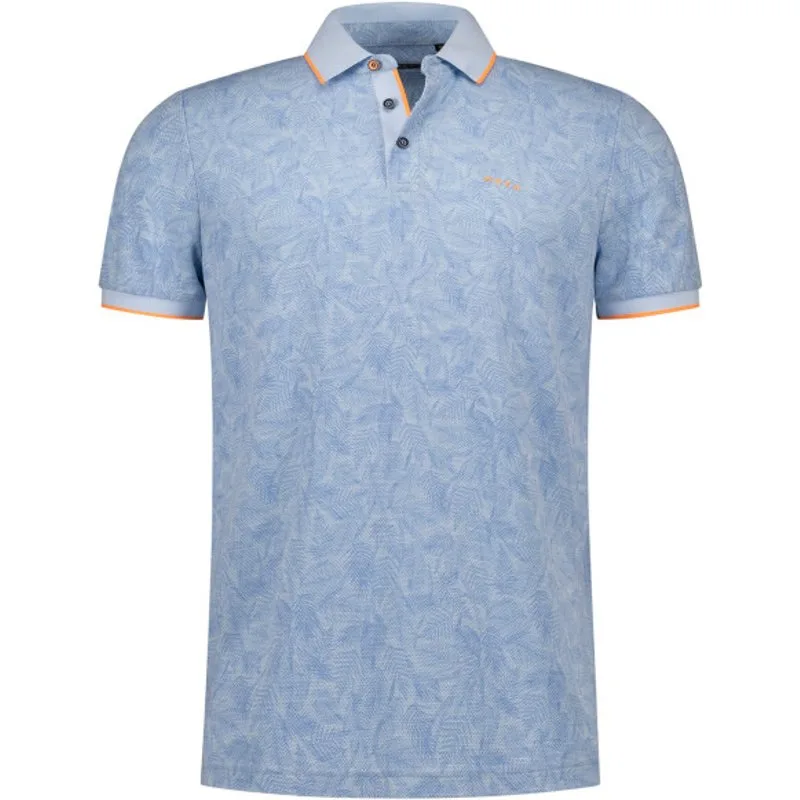 Mooie casual heren poloshirt met korte mouwen van NZA - New Zealand Auckland. Deze NZA heren polo heeft een subtiel allover gebloemd dessin en een smalle contrasterende rand aan de boorden. Modern fit 66% Viscose/ 34% Reclycled Polyester