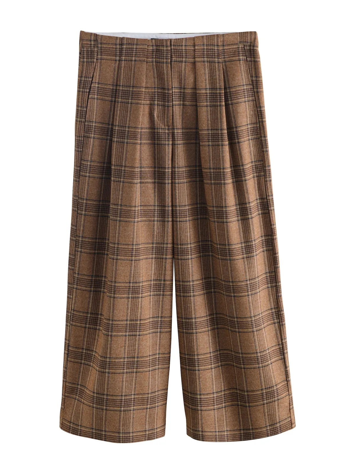 Design: Zakken aan de zijkant; Type sluiting: Ritssluiting; Materiaal: Gerecycled materiaal; Motief: Geruit; Details: Plooien; Extra's: All-over patroon; Lengte: Lang/maxi; Pasvorm: Wide leg; Taillehoogte: Mid waist